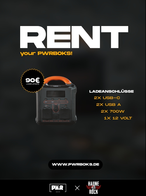 Damit ihr euer Festival-Erlebnis uneingeschränkt genießen und jeden Moment festhalten könnt, bieten wir euch in Kooperation mit PWRBOKS eine praktische Lösung für eure mobile Stromversorgung.